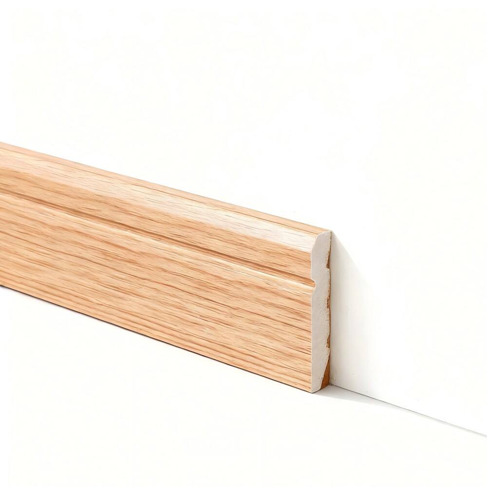 Solid Wood Skirting Board. Crafted from premium natural oak wood, offering exceptional durability and a timeless aesthetic. Features a smooth, sanded finish ready for painting or staining to match any décor. Its simple, elegant profile cleanly conceals expansion gaps between walls and flooring. Easy to install with a classic design that enhances the beauty of hardwood, laminate, or LVT flooring. Available in multiple lengths and depths for a perfect custom fit.